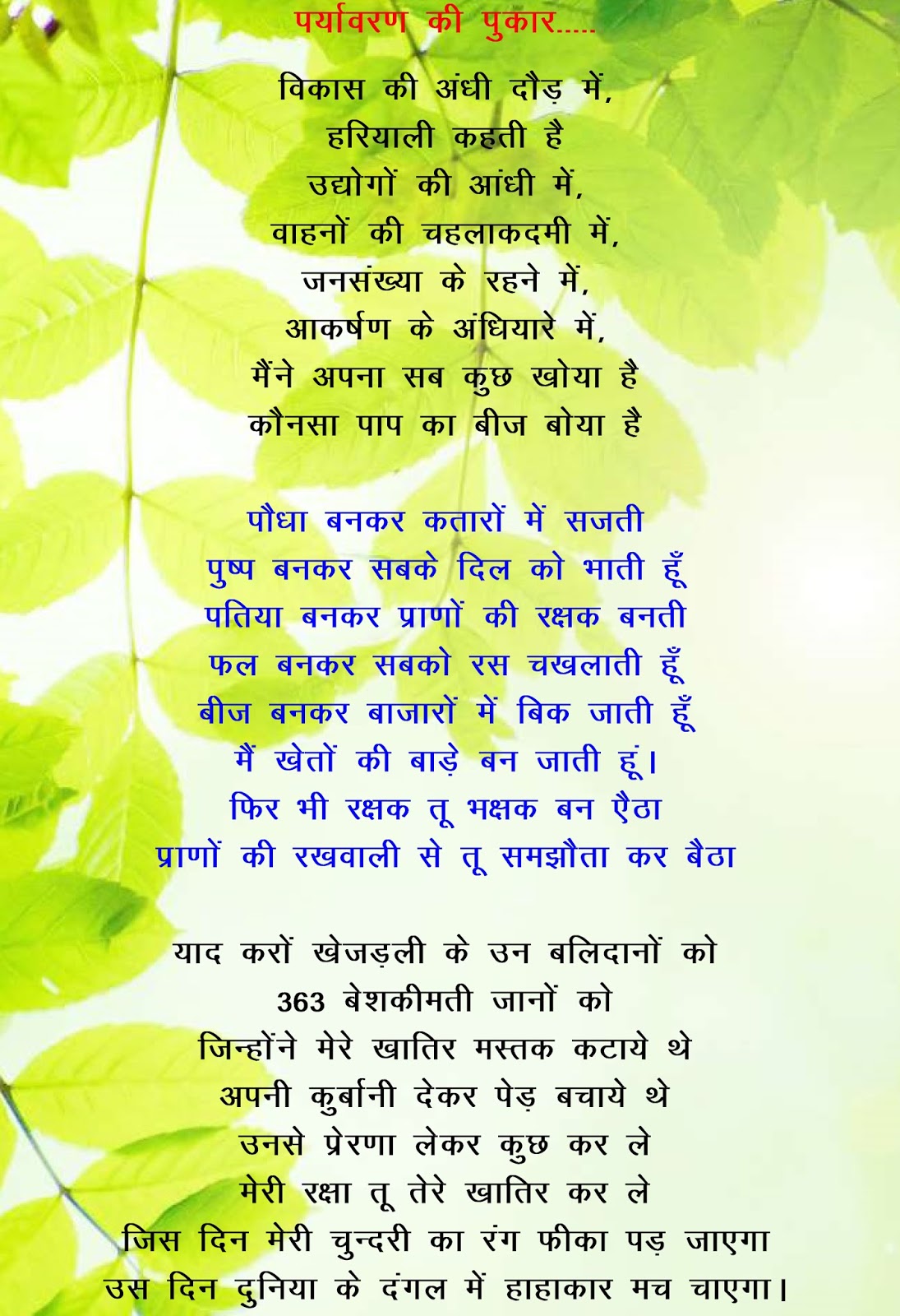 Contents 1 विश्व पर्यावरण दिवस कविता 2020 2 poem on world environment day in hindi